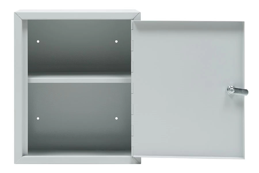 Внутреннее пространство аптечки поделено на два отделения. На дверцу установлен ключевой замок «Практик».
